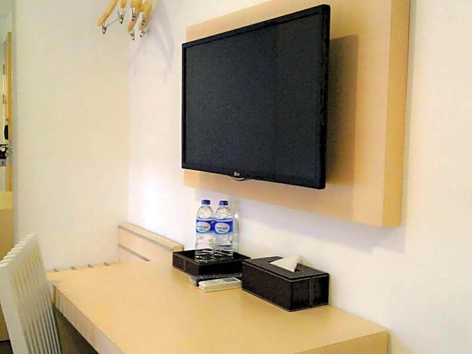 This slightly larger air-conditioned twin room features a seating area, a flat screen TV with satellite channels, a wardrobe, and an private bathroom featuring shower facility, slippers and free toiletries. A view of the city can be seen from the room.